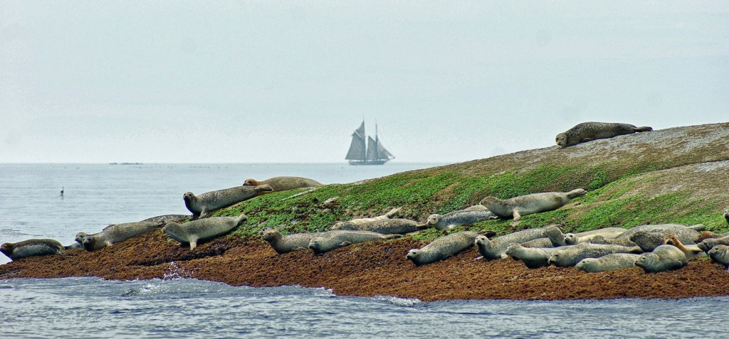 Unwavering from its course, the distant ship is missing the wonder of this seal rookery and is a reminder of the gentleman in the anonymously written poem “Opportunities Missed”: There was a very cautious man/Who never laughed or played/He never risked, he never tried/ He never sang or prayed. // And when he one day passed away/His insurance was denied/For since he never really lived/They claimed he never died!