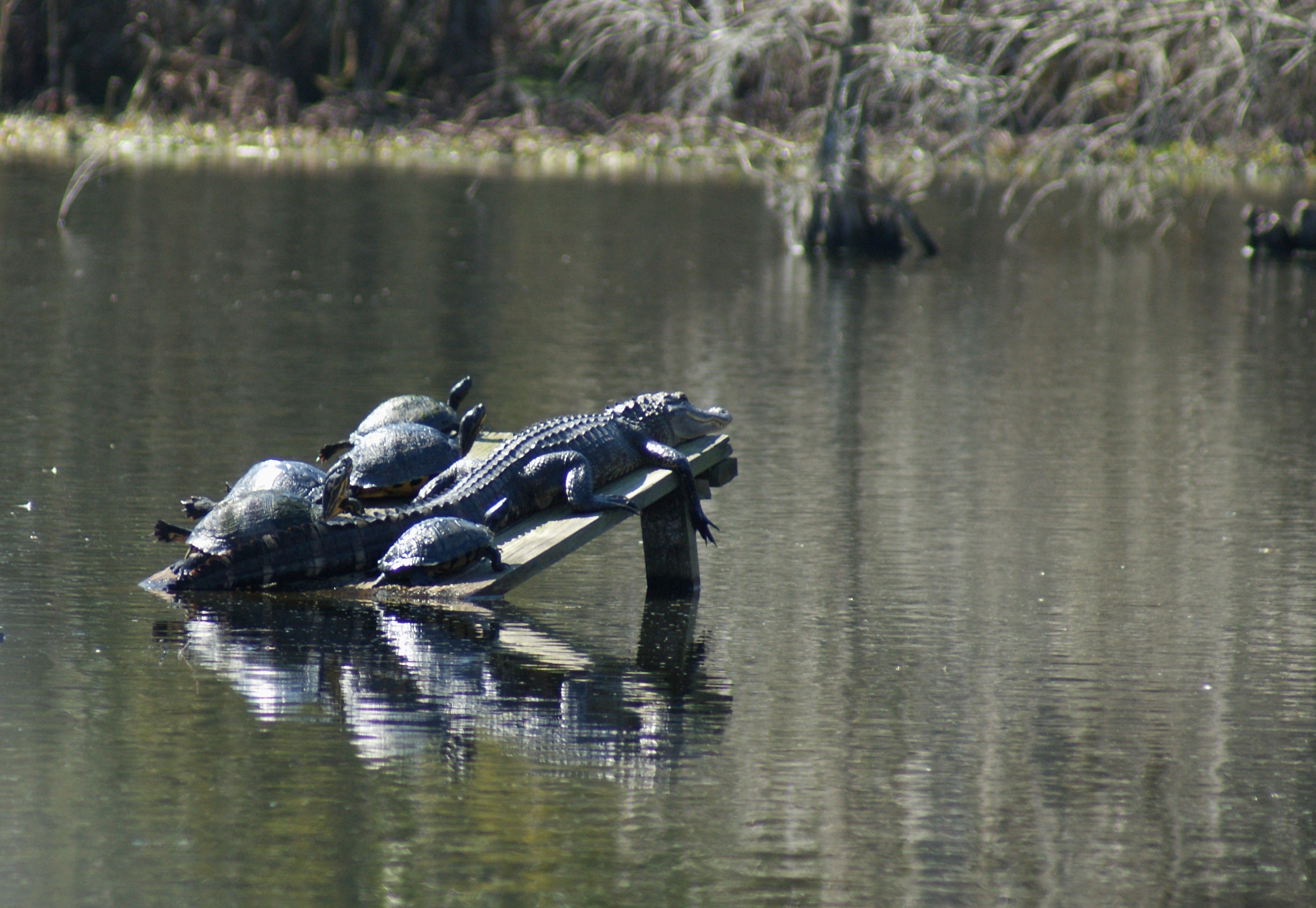 This swampy microcosm was spotted on a South Carolinian plantation while we were visiting family. Drawn to the smug almost gleeful countenance of the alligator and the naive inquisitiveness of the turtles, I immediately thought of Lewis Carroll’s poem in which the “Walrus and the Carpenter” lured some happy little oysters on a walk and then ate them and of Mary Howitt’s poem about the flattering spider who enticed a little fly into its web. But turtle shells are not very digestible and alligators’ hard exoskeleton-like skin would not be good for nibbling; so everybody appeared safe!